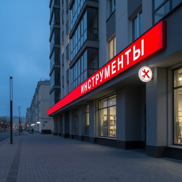 Мы предлагаем изготовление вывесок для магазинов инструментов под ключ — от идеи до монтажа и подключения подсветки.