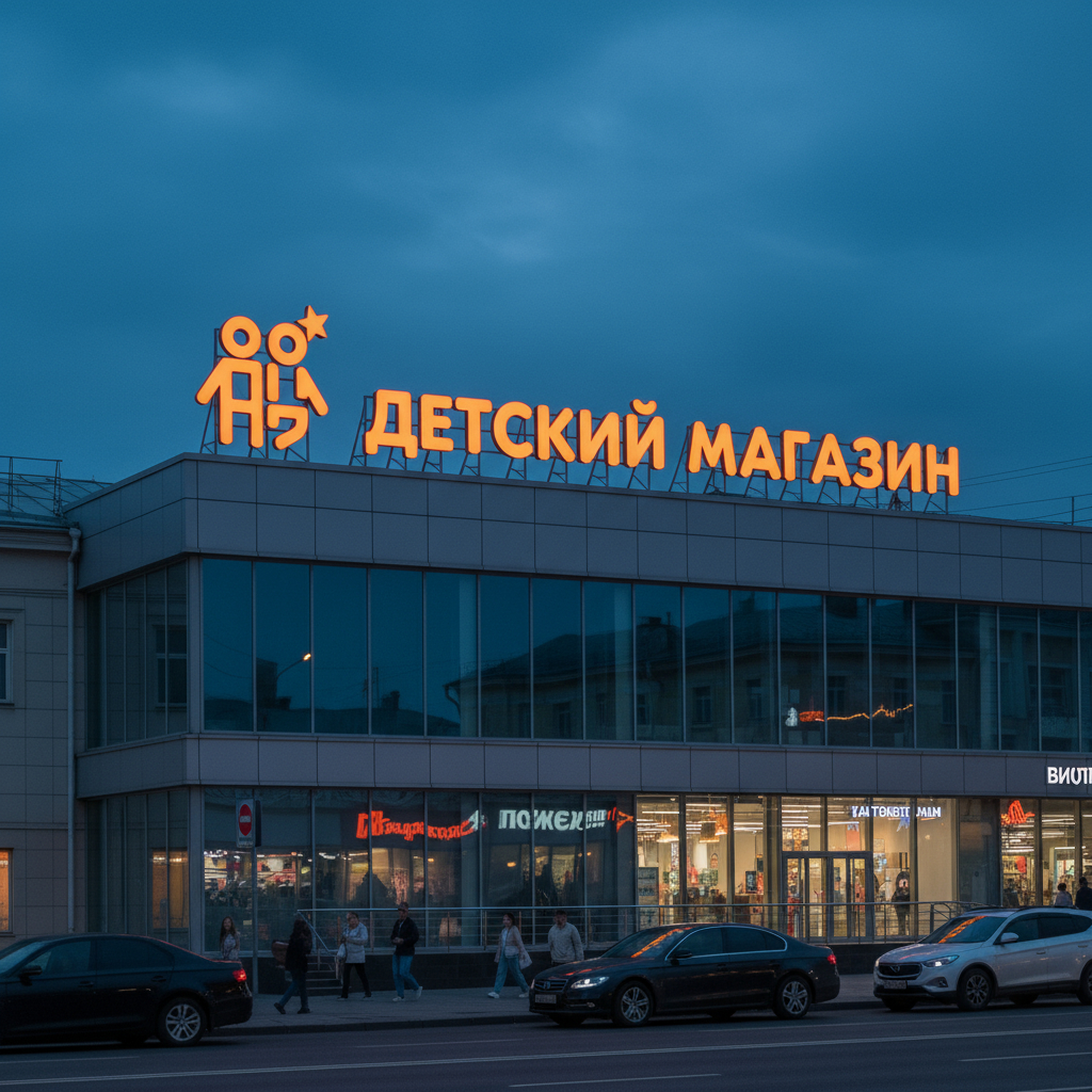 В Москве, где детские магазины представлены повсеместно — от торговых центров до уютных районных лавок — именно световая вывеска помогает выделиться, привлечь внимание родителей и детей, а также создать позитивное восприятие бренда.
