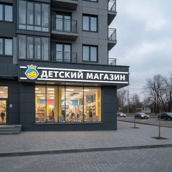 Детский магазин — это место, где важно вызвать улыбку и доверие. Клиенты приходят сюда не просто за покупкой, а за положительными эмоциями. Именно поэтому фасадная вывеска должна быть яркой, дружелюбной и вызывать ощущение заботы и радости.