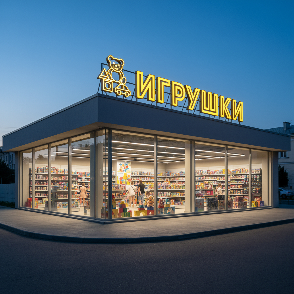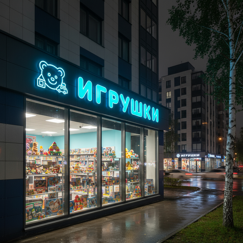 В Москве, где конкуренция в сфере детских товаров особенно высока, световая вывеска помогает магазину игрушек выделиться, стать узнаваемым и притягивать внимание как детей, так и родителей.