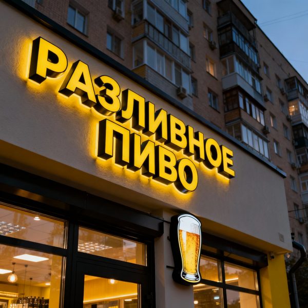 В Москве, где на одной улице может быть несколько подобных точек, световая вывеска становится главным элементом узнаваемости бренда. Она должна быть стильной, запоминающейся и передавать правильное настроение — от классической “пивной у дома” до современного крафтового бара.