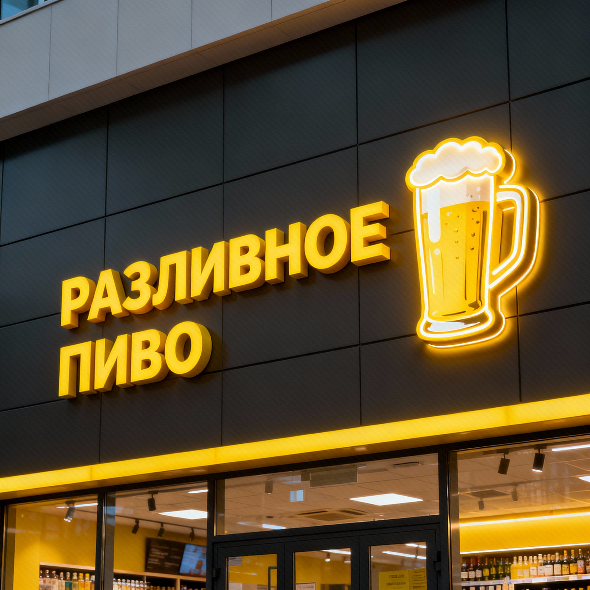 Магазины разливного пива — это особый формат торговли, где важно передать атмосферу отдыха и хорошего настроения. Покупатель должен почувствовать, что здесь — место с душой, где ценят вкус и традиции. Именно поэтому фасадная вывеска играет ключевую роль: она задаёт настроение и помогает привлечь посетителей.