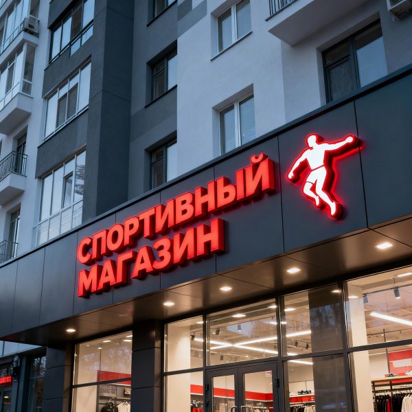 В Москве, где спортивные магазины расположены буквально на каждом километре, световая вывеска становится важнейшим инструментом визуального позиционирования. Она помогает выделиться среди конкурентов, усилить узнаваемость бренда и привлечь целевую аудиторию.
