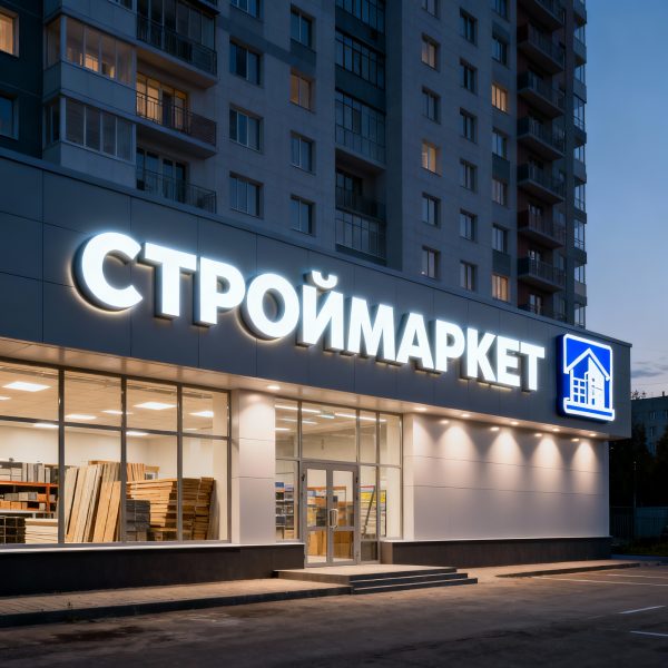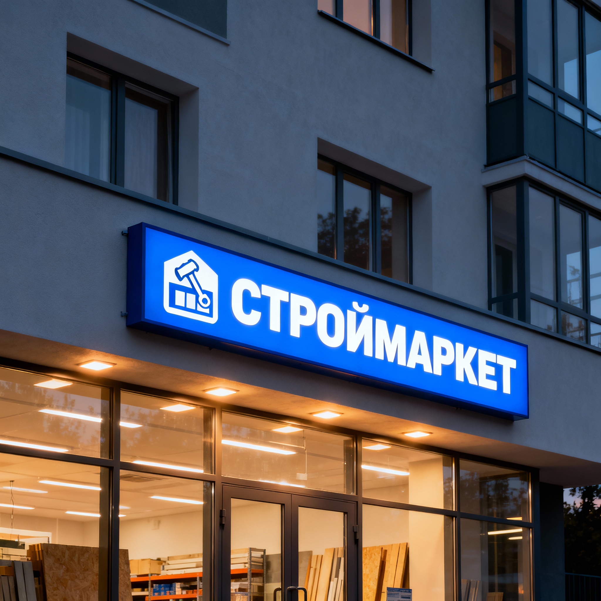 Строительный магазин — это место, где покупатели ищут не только материалы, но и уверенность в качестве и опыте. Именно фасадная вывеска создаёт первое впечатление о компании: она должна вызывать доверие, выглядеть солидно и быть хорошо видна даже с расстояния.