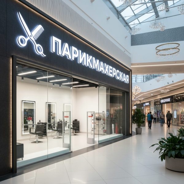 Дизайн и конструкция вывески зависят от формата салона: классическая парикмахерская, барбершоп, семейный салон или студия премиум-класса.
