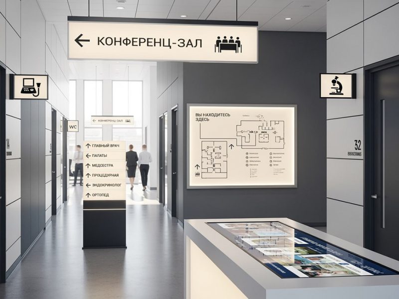 Грамотно спроектированная визуальная навигация делает пространство удобным и современным. Она помогает посетителям быстро находить нужные направления, снижает нагрузку на персонал и формирует положительное впечатление о компании.