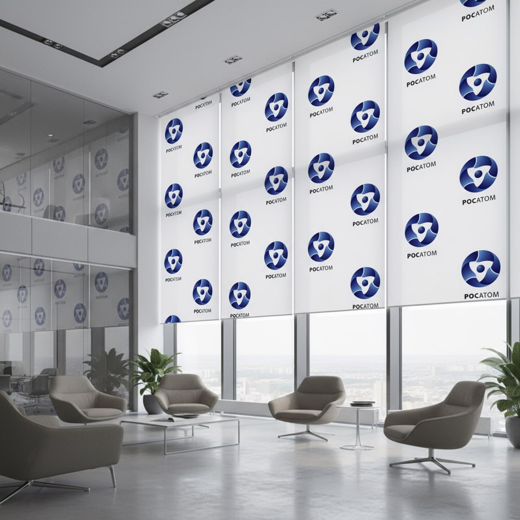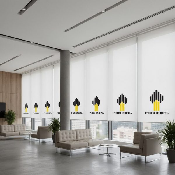 Изготовление рулонных штор с логотипом под заказ для бизнеса